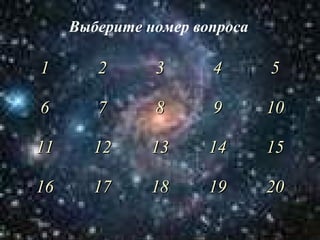 Документ представляет собой вопросы для внеклассного мероприятия по астрономии, посвященного полету Ю. Гагарина. Он включает вопросы о небесных телах, созвездиях, мифологии и космонавтике с использованием различных источников. Вопросы охватывают исторические аспекты астрономии, литературные ссылки и научные факты.
