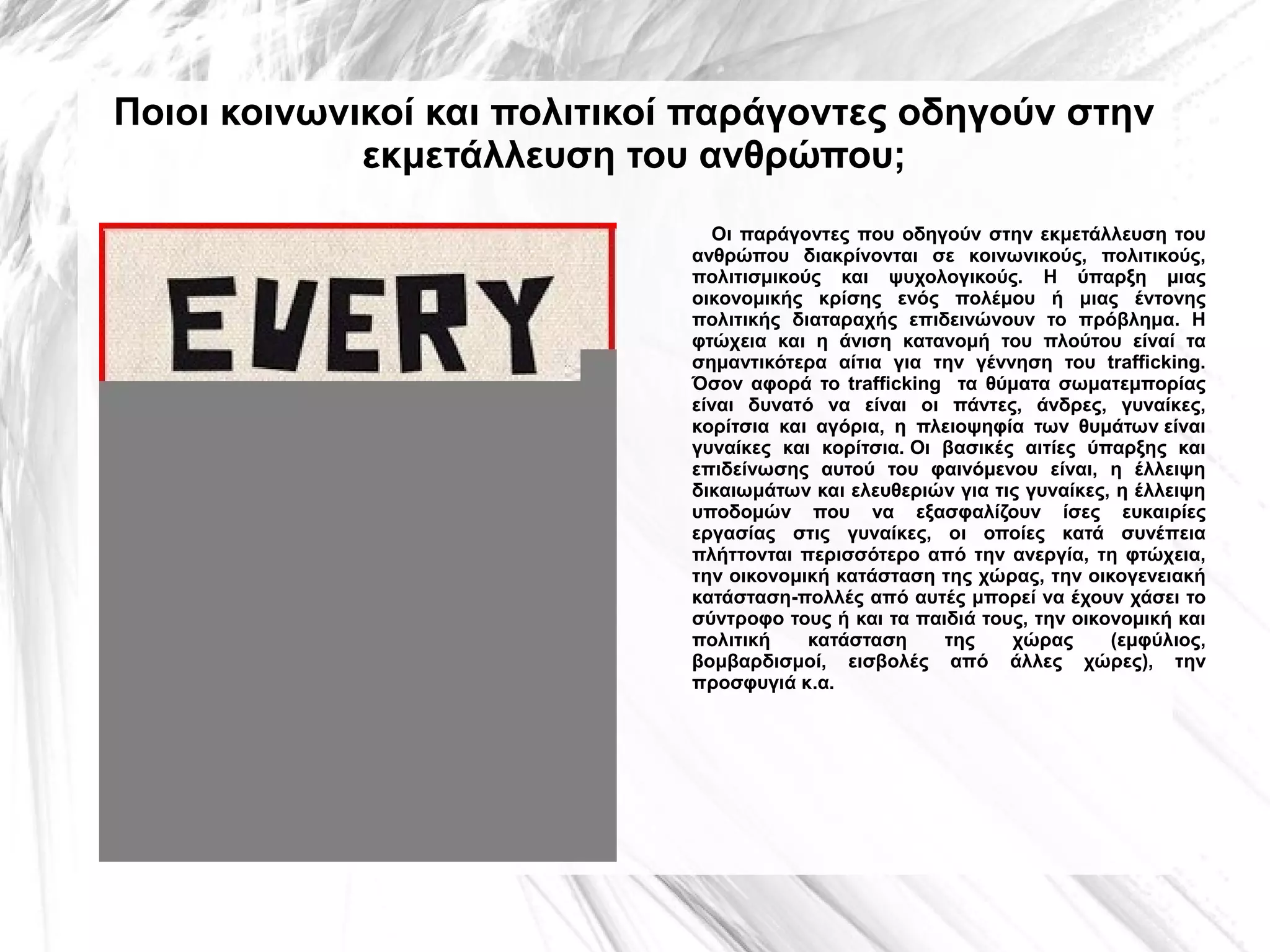 φαινόμενου της ανθρώπινης εκμετάλλευσης. Πρέπει για να προστατέψει τα