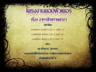 โครงงานอาหารไทยทีตงใจจัดทาขึนชินนี้ จึงอยากจะให้ผูทไี่ ด้รบชมได้ความรู้ ่