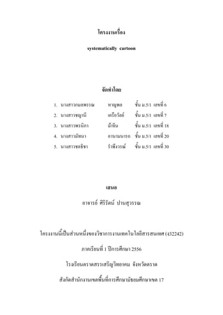 โครงงานเรื่อง systematically cartoon จัดทาโดย 1. นางสาวกมลพรรณ หาญพล ชั้น