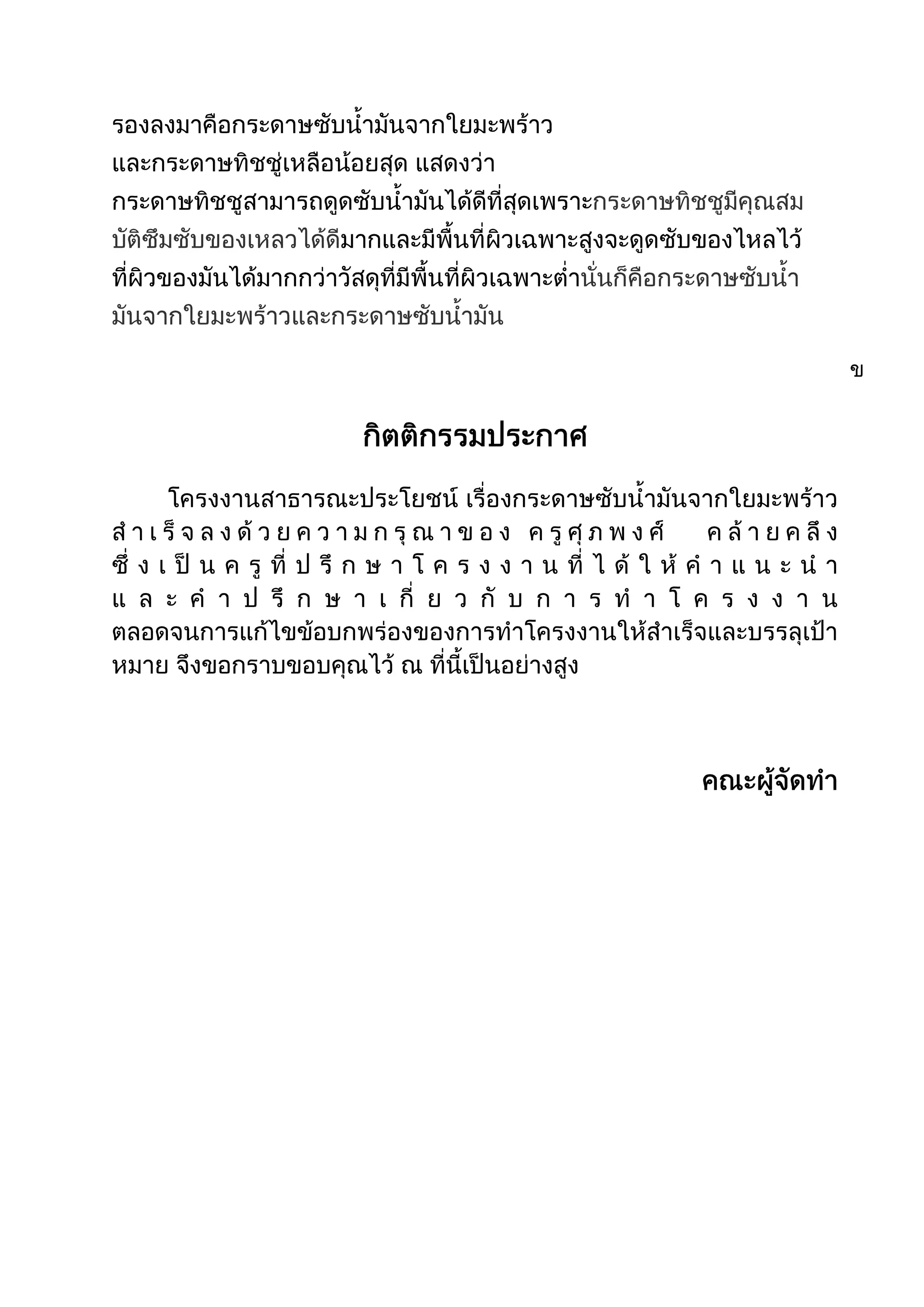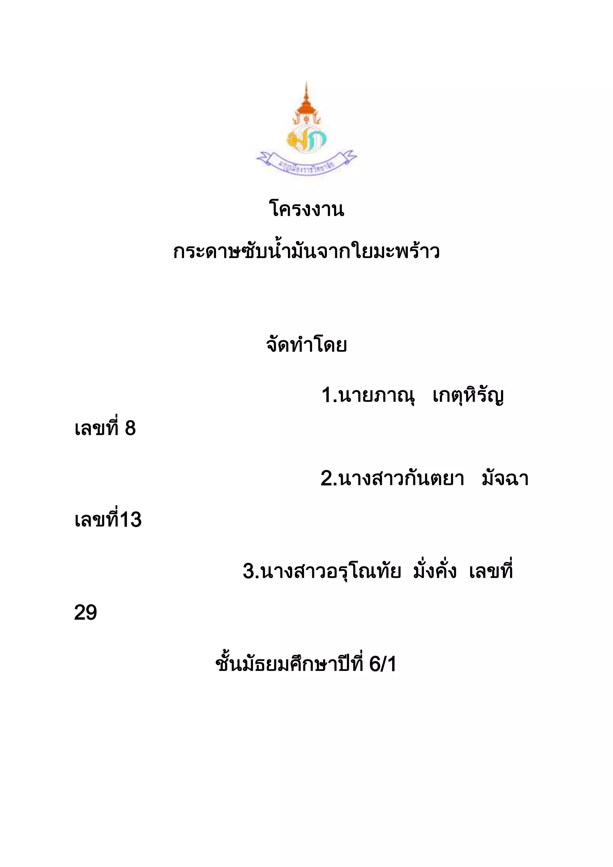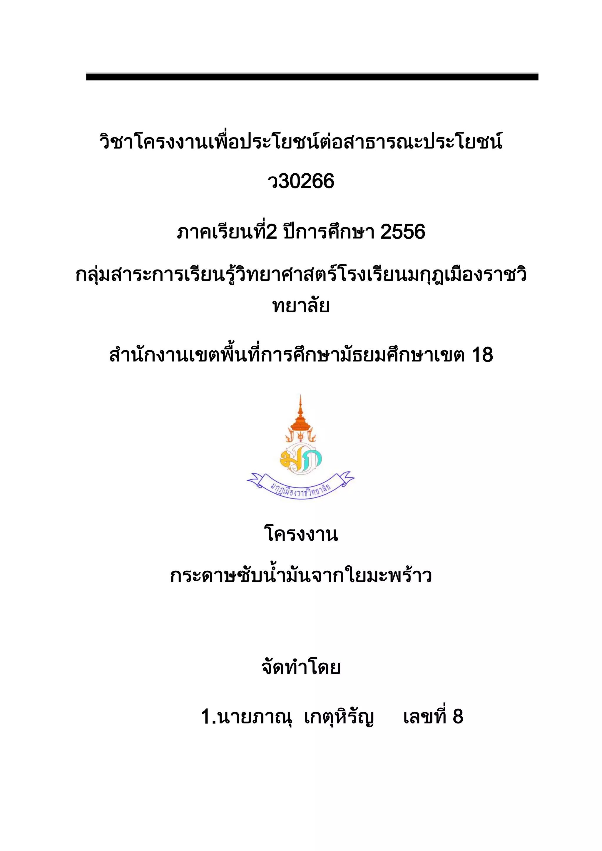 โครงงานกระดาษซับน้ำมันจากใยมะพร้าว โรงเรียน มกุฎเมืองราชวิทยาลัย #