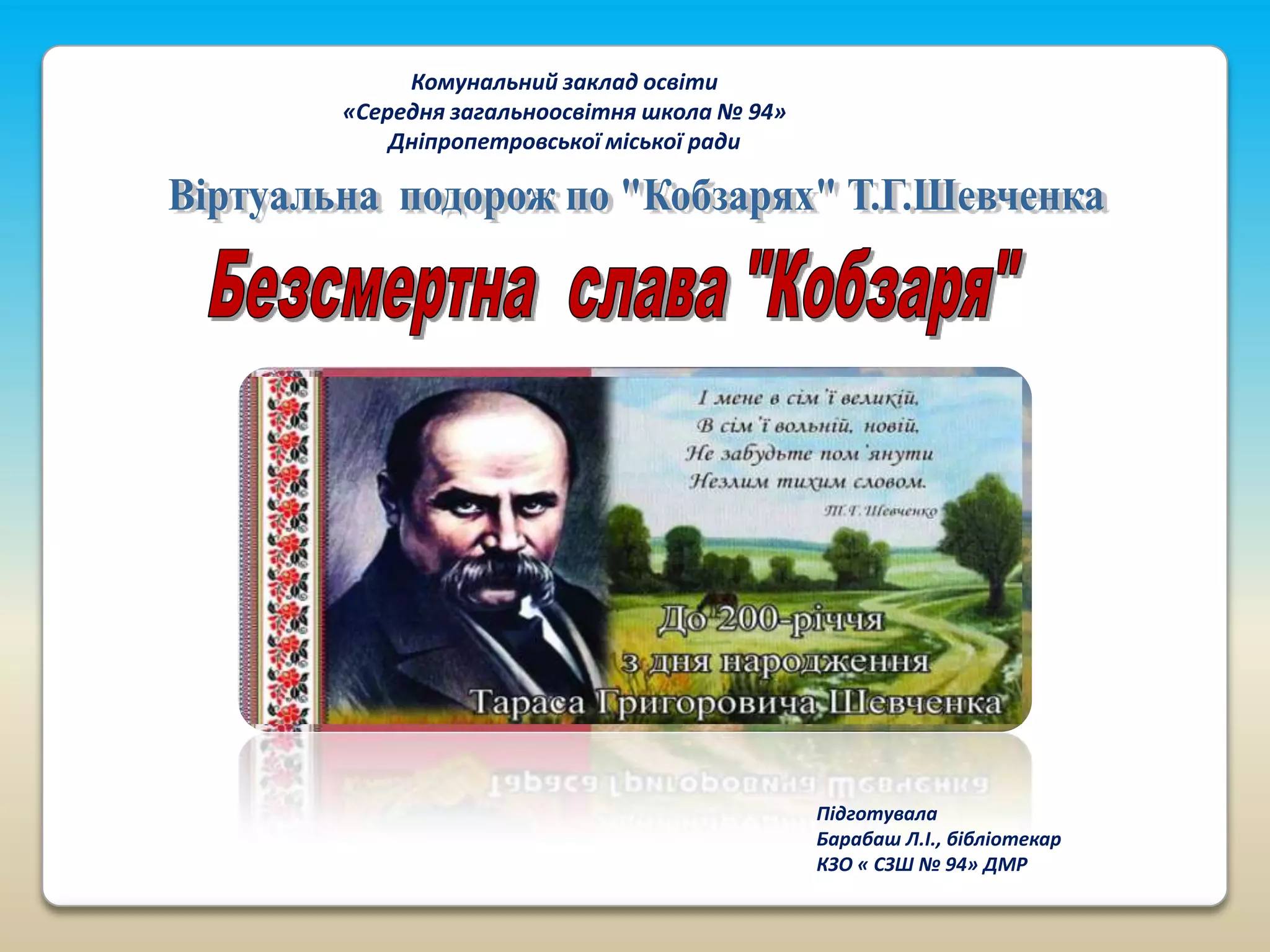 Шевченка – в його «Кобзарі». У «Кобзарі» відбилися київські святині, запорізьке степове життя, ідилія