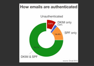This document provides an overview of email delivery and security best practices. It discusses topics like authentication methods, content filtering, bounce handling, throttling, and using third party services for large mailings. Key points covered include SPF, DKIM, and reverse DNS configuration; blacklist checking; and techniques for reducing spam complaints.