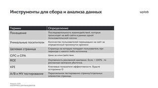 Подробнее об инструментах для сбора и анализа данных в помощь seo- и smm-специалистам, а также менеджерам. - сегментация и сравнение - когортный анализ - многоканальные последовательности - корреляция
