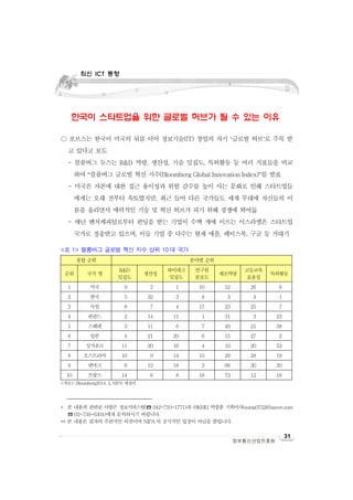 ○ 포브스는 한국이 미국의 뒤를 이어 정보기술(IT) 창업의 차기 ‘글로벌 허브’로 주목 받