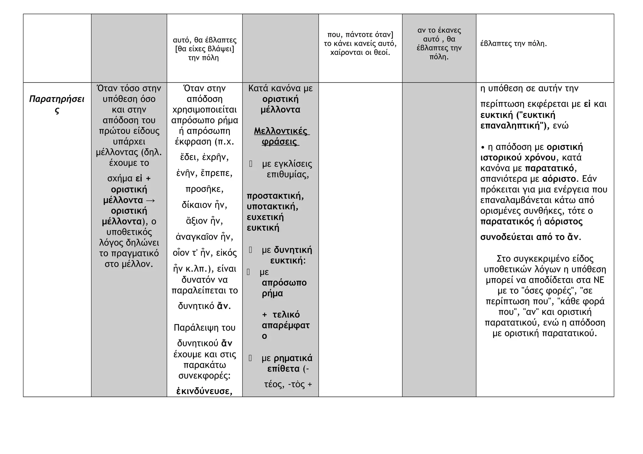 • Παράλειψη του ρήματος της υπόθεσης ή της απόδοσης: το ρήμα της υπόθεσης ή της απόδοσης μπορεί να παραλείπεται, όταν εννοείται