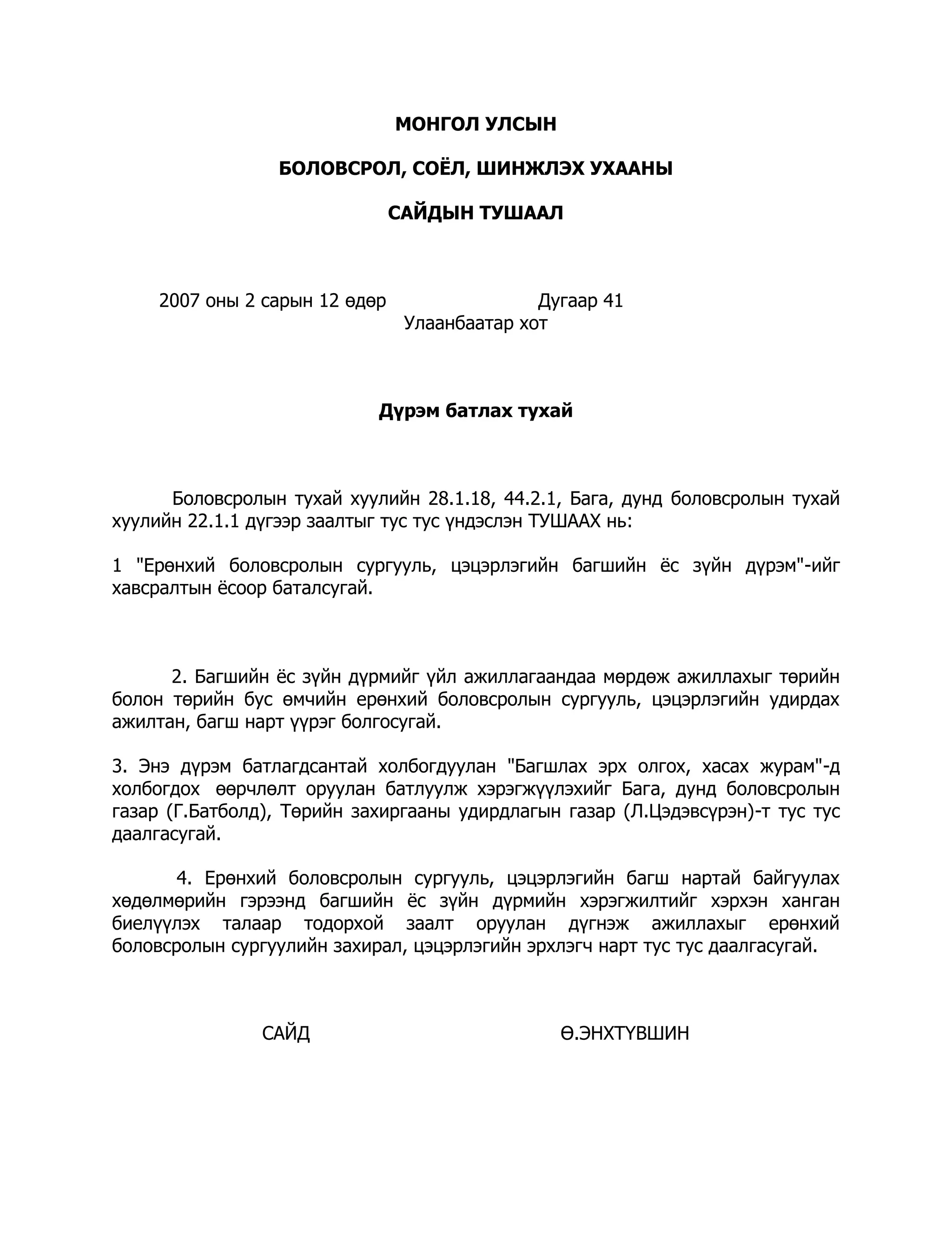 2. Багшийн ёс зүйн дүрмийг үйл ажиллагаандаа мөрдөж ажиллахыг төрийн