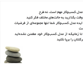 در این ارائه مدل کسب و کار و بوم مدل کسب و کار به صورت مقدماتی تعریف شده است
