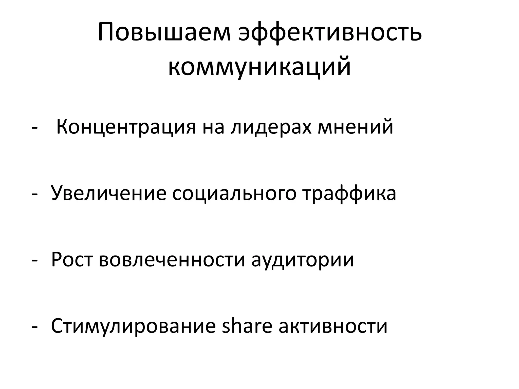 Документ описывает концепцию лидера мнений, человека, обладающего влиянием на группу людей с похожими взглядами. Для выявления таких лидеров предлагаются методы, включая встраивание кнопок на различные платформы и стимуляцию их нажатия с помощью различных мотивационных элементов. Также упоминается пример использования данной стратегии на сайте gorussia2014.ru для снижения рекламных расходов.
