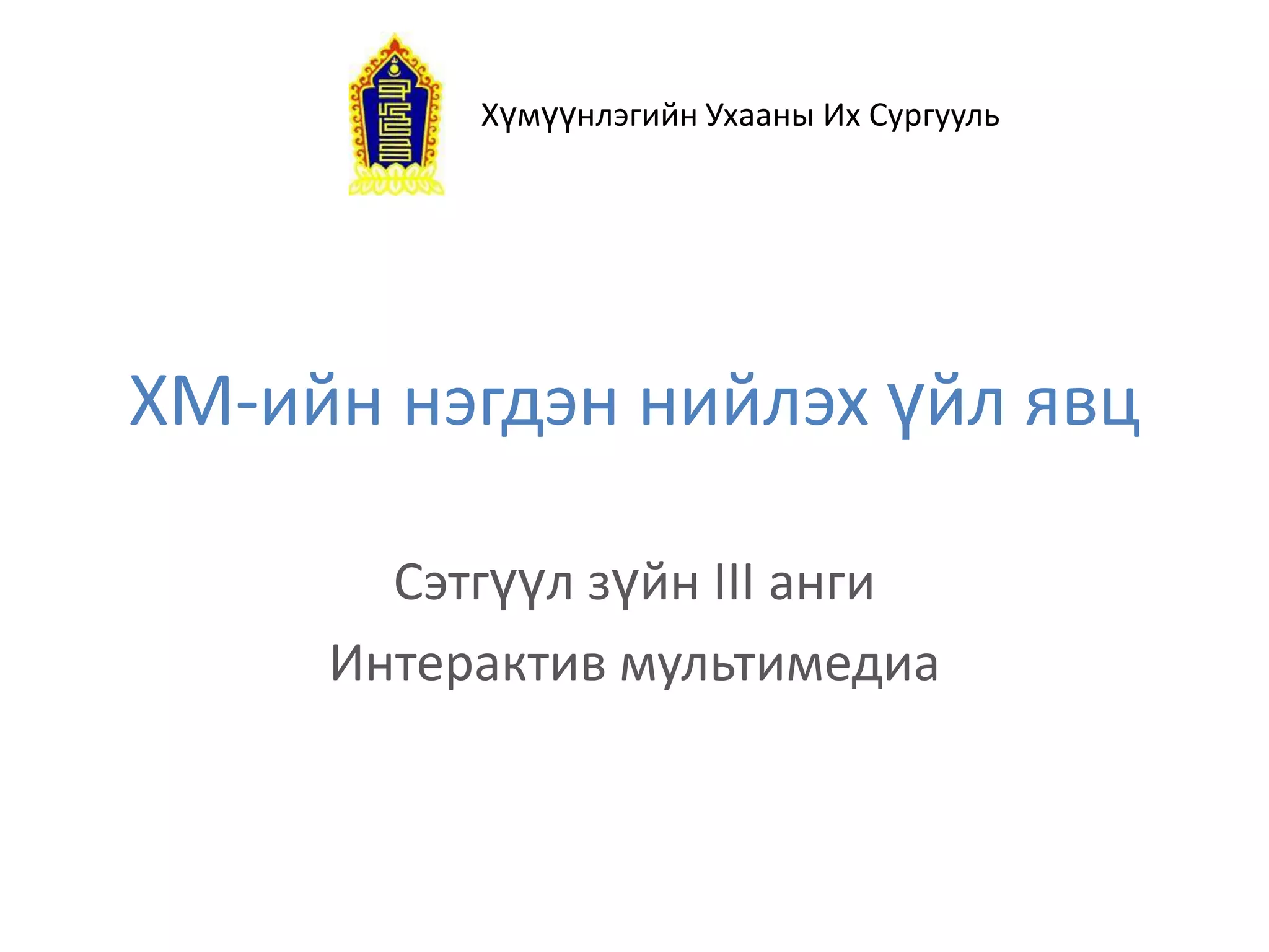 Сургууль ХМ-ийн нэгдэн нийлэх үйл явц Сэтгүүл зүйн III анги Интерактив мультимедиа