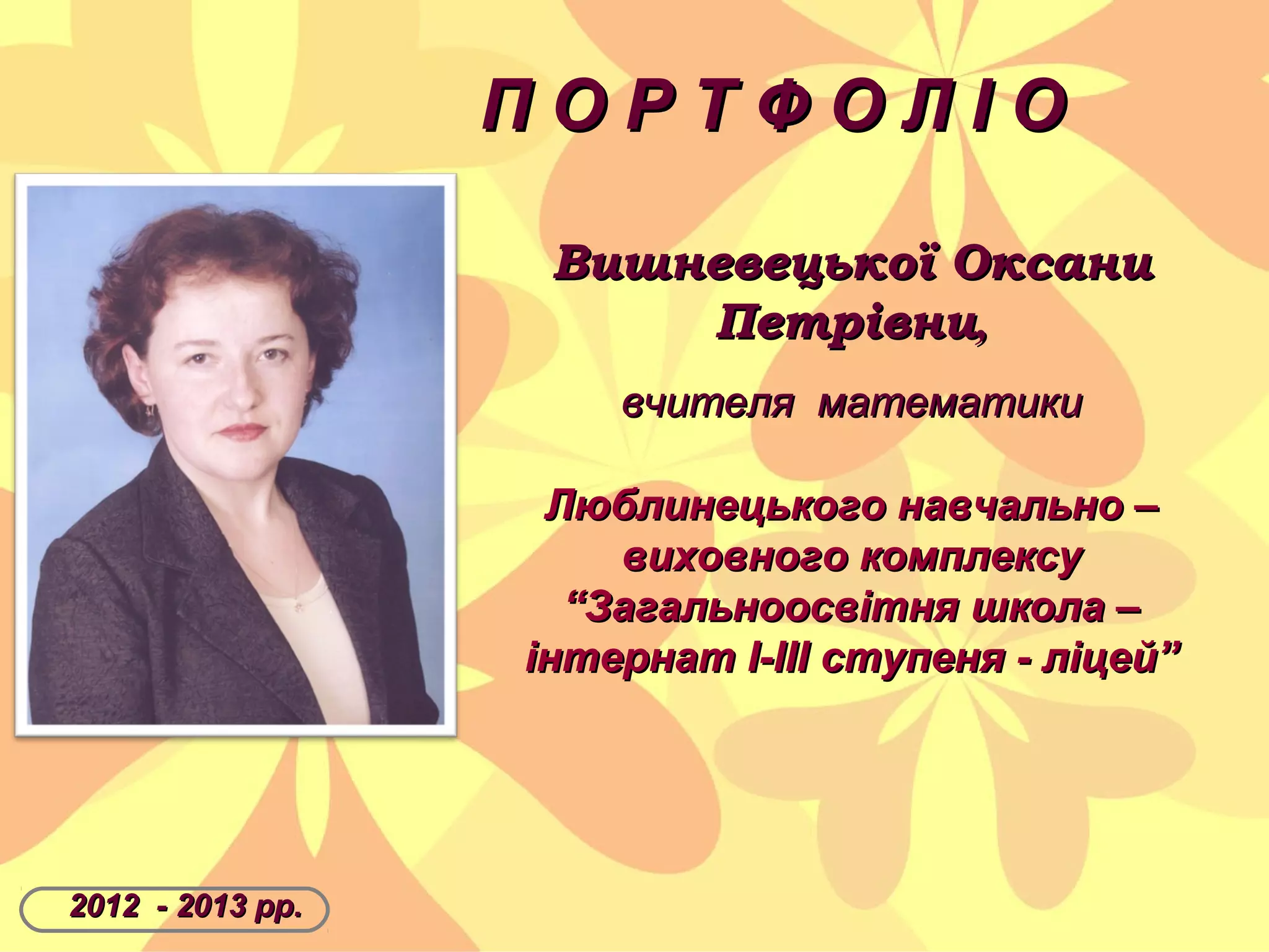 Керівник проекту: Вишневецька Оксана Петрівна, вчитель математики