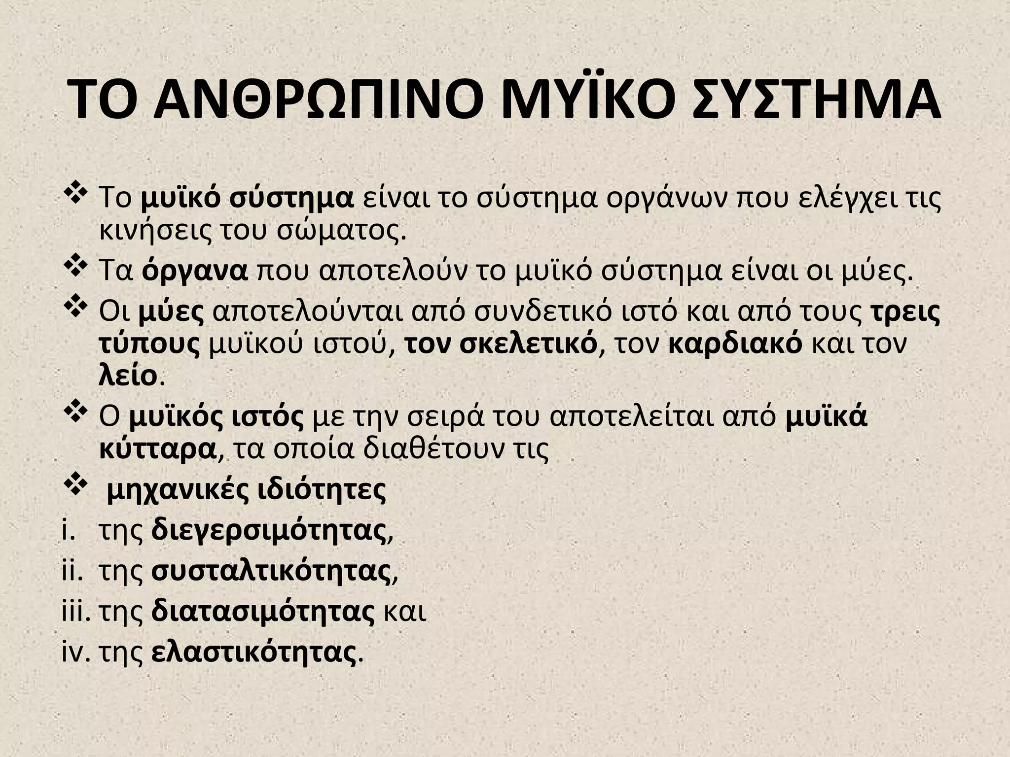 ΤΟ ΑΝΘΡΩΠΙΝΟ ΜΥΪΚΟΣΥΣΤΗΜΑ
