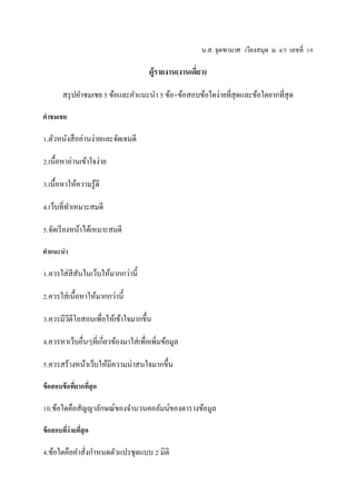 สรุ ปคาชมเชย 5 ข้อและคาแนะนา 5 ข้อ+ข้อสอบข้อใดง่ายที่สุดและข้อใดยากที่สุด