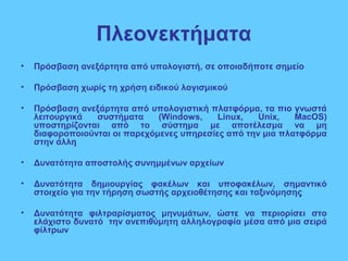 Πρόσβαση ανεξάρτητα από υπολογιστική πλατφόρμα, τα πιο γνωστά