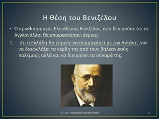• 1. ΟΕλευθέριος Βενιζέλος υποστηρίζει τη συμμαχία της