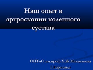 Документ описывает опыт и преимущества артроскопии коленного сустава как малоинвазивного метода обследования и лечения. Указывается на высокую точность диагностики и минимальный болевой синдром, а также на быстроту восстановления после операции. Исследование проводилось на 100 пациентам с различными повреждениями, где артроскопия продемонстрировала 100% эффективность в диагностике внутрисуставных повреждений.