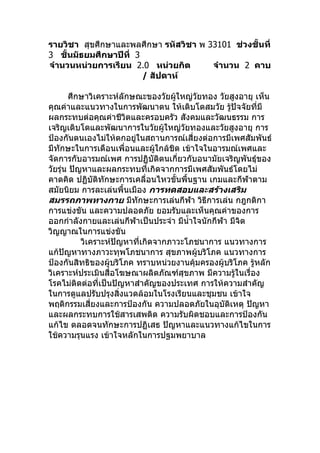 รายวิชา สุขศึกษาและพลศึกษา รหัสวิชาพ 33101 ช่วงชั้นที่