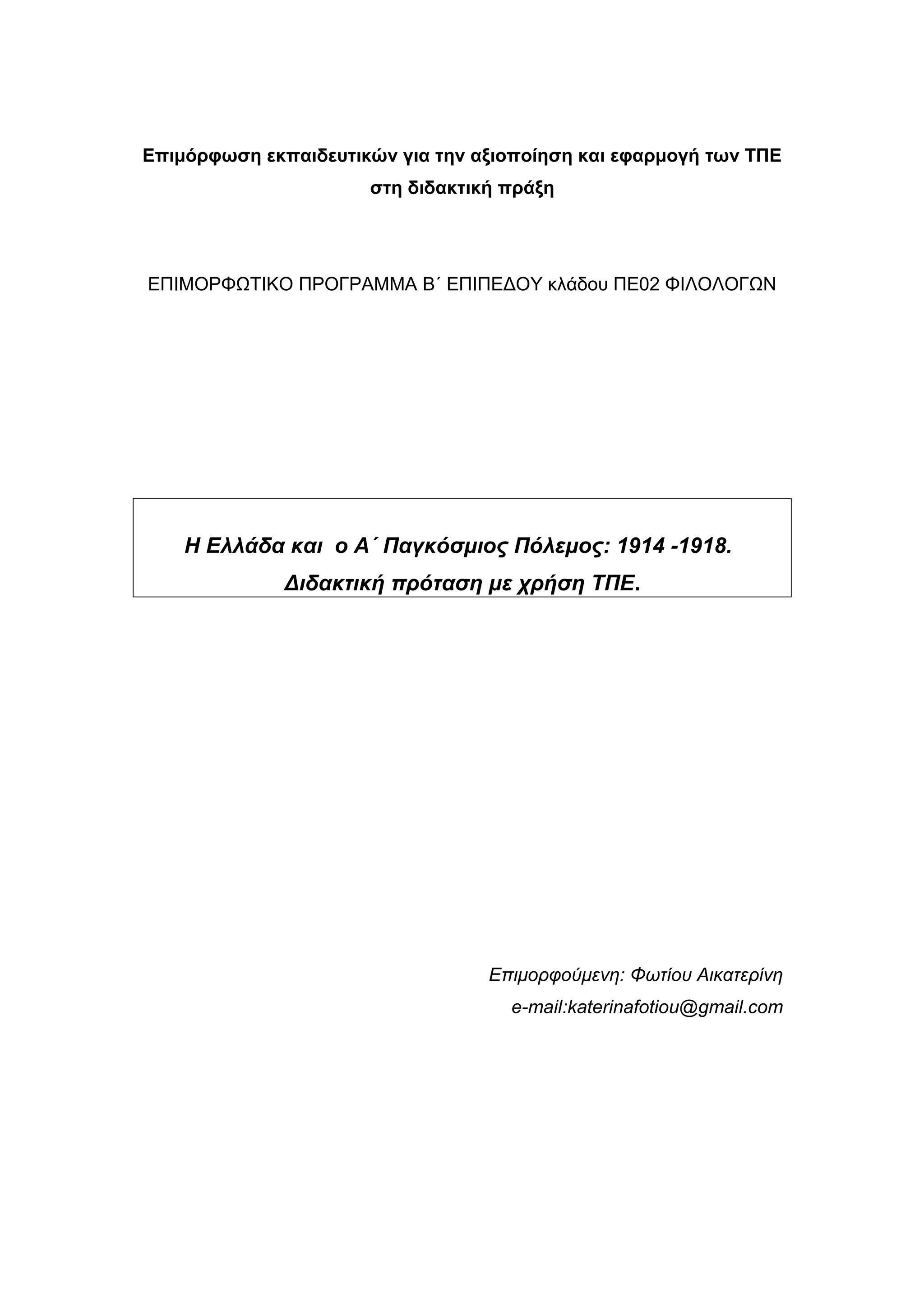 ΕΠΙΜΟΡΦΩΤΙΚΟ ΠΡΟΓΡΑΜΜΑ Β΄ ΕΠΙΠΕΔΟΥ κλάδου ΠΕ02 ΦΙΛΟΛΟΓΩΝ