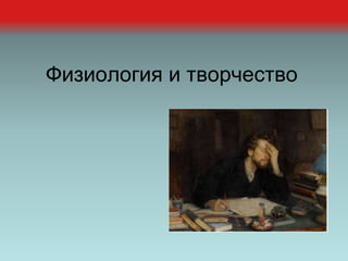 Документ обсуждает творческий процесс, включая стадии, такие как подготовка, инкубация и верификация идей. Он также описывает характеристики творческого мышления, такие как дивергентность и оригинальность, а также факторы, способствующие и препятствующие его развитию. В заключение, подчеркивается важность личных качеств, мотивации и условий для успешного творчества.