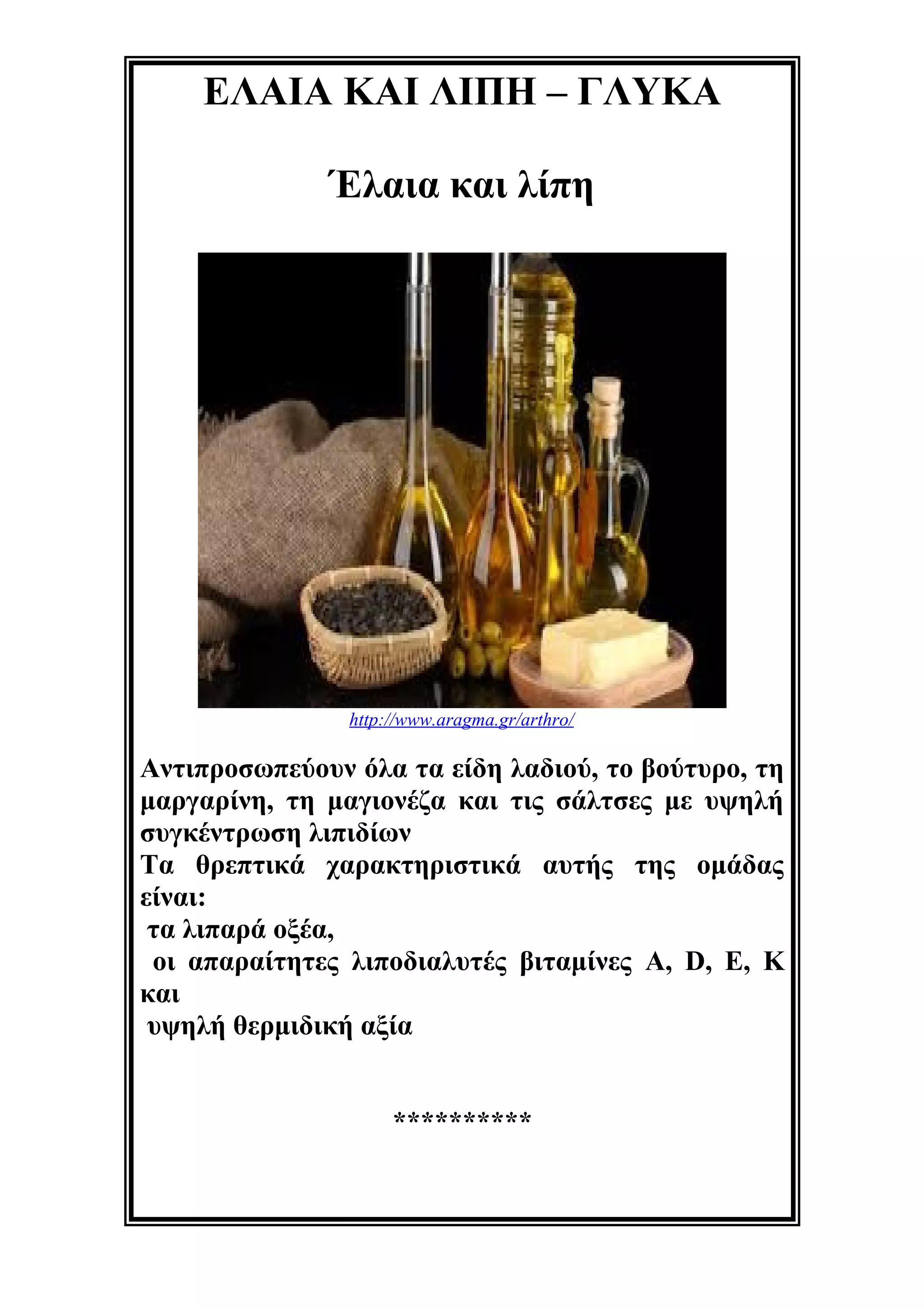 ΕΛΑΙΑ ΚΑΙ ΛΙΠΗ– ΓΛΥΚΑ