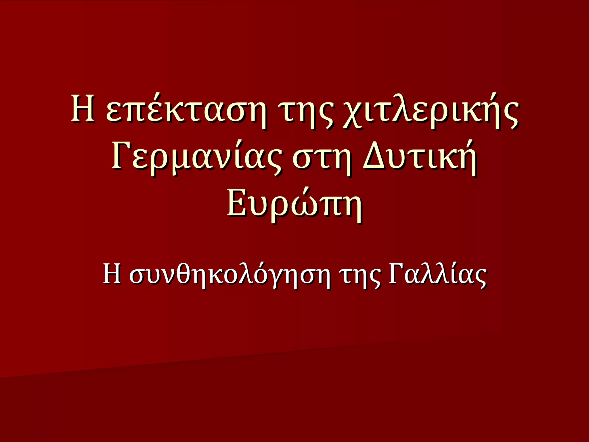 Η επέκταση της χιτλερικής γερμανίας στη Δυτική Ευρώπη 1. Η επέκταση της χιτλερικήςΗ επέκταση της χιτλερικής