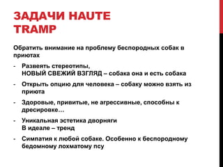 Документ посвящен проблеме беспородных собак в приютах и необходимости изменить отношение к ним. Он подчеркивает уникальность и преимущества дворняг, включая их здоровье и способность к дресировке, а также предлагает идеи для кампаний по повышению осведомленности и популяризации усыновления. Содержит планы по проведению фотосессий, бранчей и взаимодействию с общественностью через социальные сети.