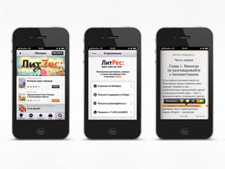 Документ описывает стратегии создания успешного мобильного приложения, подчеркивая рост выручки мобильных приложений в России. Рассматриваются успешные примеры приложений и типы монетизации, такие как платные, freemium и реклама. Предлагаются шаги по разработке приложения, включая создание прототипа и дизайн, а также важность обратной связи от пользователей для его успешного развития.