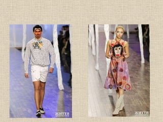 Друге життя творівМарії Приймаченко Серед малярства, ткацтва та гончарства є також дизайнерське вбрання від Олесі Теліженко. На виставку вона віддала два костюми кольору піску і зітлілого листя із колекції 2006 року «Мій добрий звір», зробленій за мотивами творчості Примаченко, а також сценічний костюм Ніни Матвієнко з цієї ж колекції.