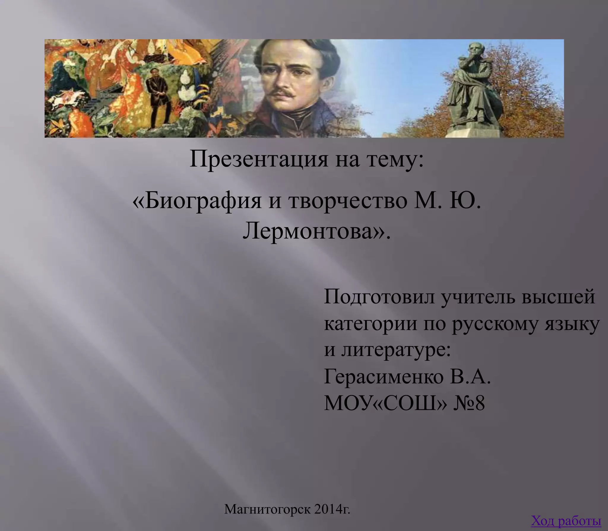 Презентация охватывает биографию и творчество Михаила Юрьевича Лермонтова, уделяя внимание его семье, в том числе бабушке Елизавете Арсеньевой и матери Марье Михайловне, а также обсуждая его детство в Тарханах и значение Кавказа в жизни поэта. Также описываются его дуэли, которые стали ключевыми событиями в его судьбе, и приведены хронологии публикаций его произведений. Документ иллюстрирует как личные, так и литературные аспекты жизни Лермонтова, подчеркивая его культурное наследие.