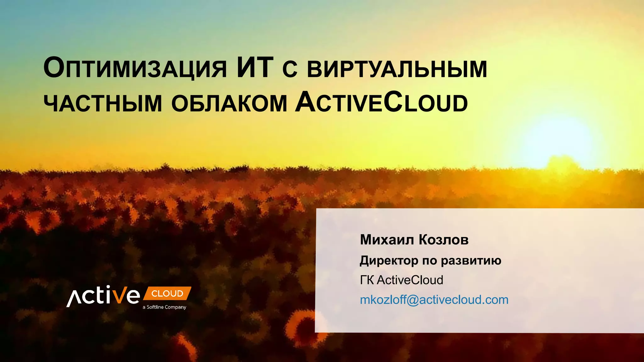 Документ описывает услуги виртуального частного облака ActiveCloud, предлагая решения для оптимизации ИТ-инфраструктуры и снижения затрат для бизнеса. Включает информацию о различных моделях облачных услуг (IaaS, PaaS, SaaS) и преимуществах перехода на облачные технологии, таких как высокая гибкость и поддержка 24/7. Также представлены примеры экономии и эффективности при использовании облачной инфраструктуры ActiveCloud.