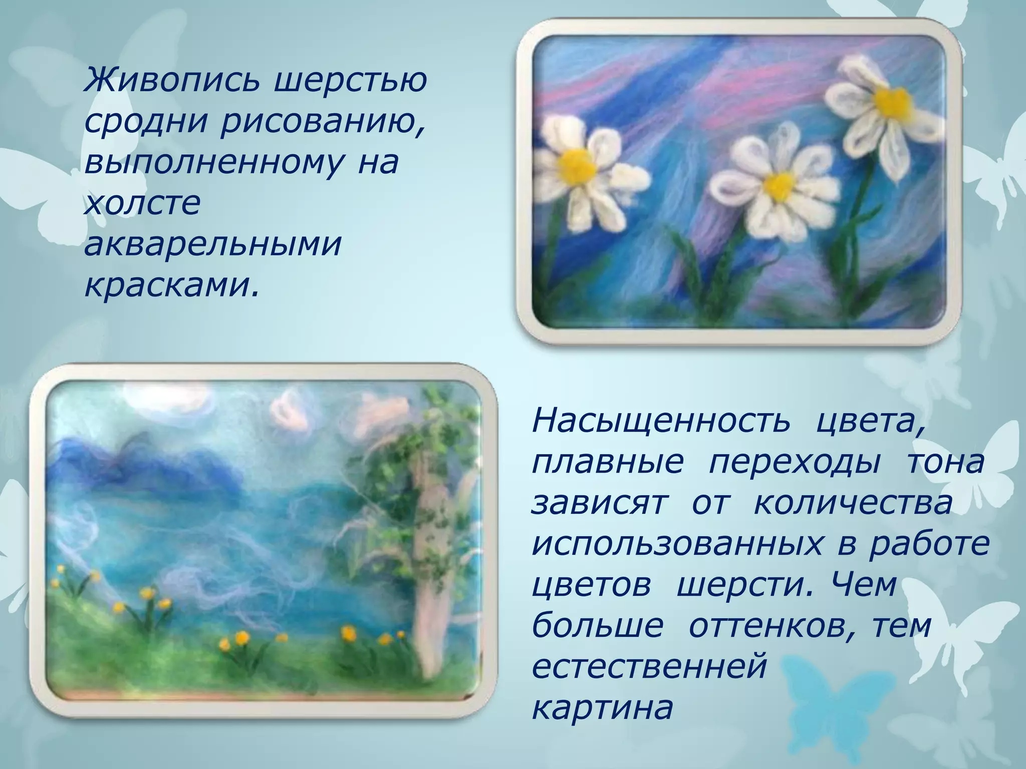 Документ описывает мастер-класс по живописи шерстью, который организовала Л.А. Суханова, показывая этапы создания картин, связанные с темой родины и Сибири. Участники работали над сюжетами, вдохновленными природой и культурой региона, такими как Байкал и сибирские цветы. Мероприятие подчеркивает семейные ценности и радость творчества.