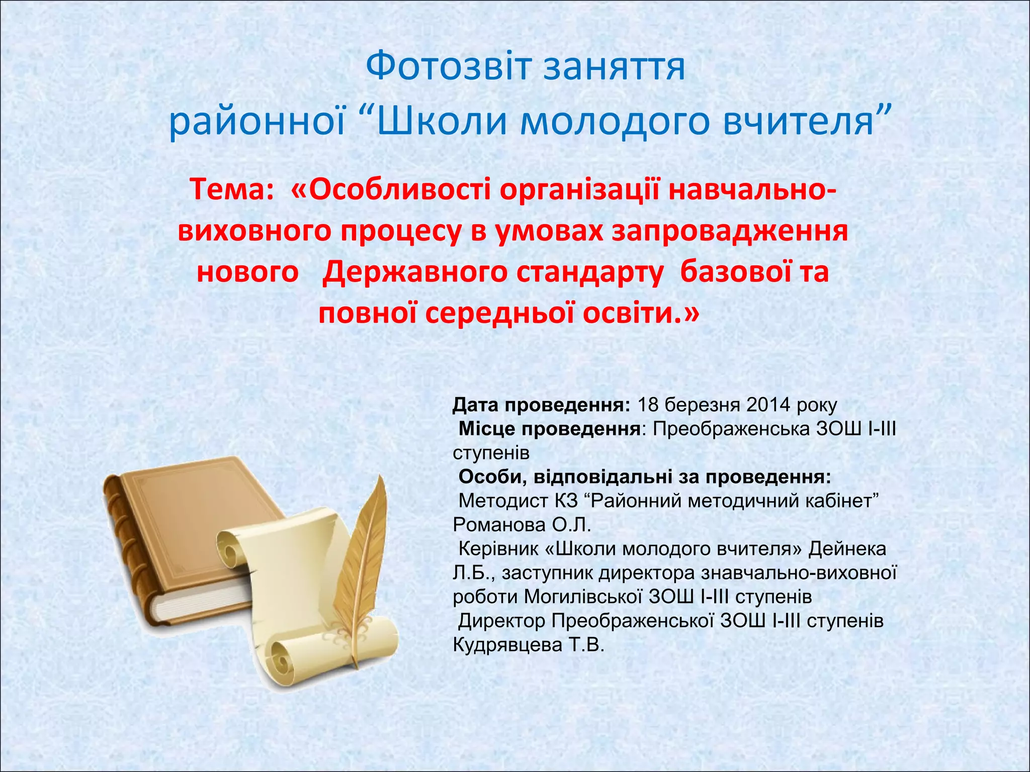 Місце проведення: Преображенська ЗОШ І-ІІІ