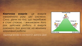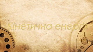 Кінетична енергія залежитьтільки від маси і швидкості тіла.