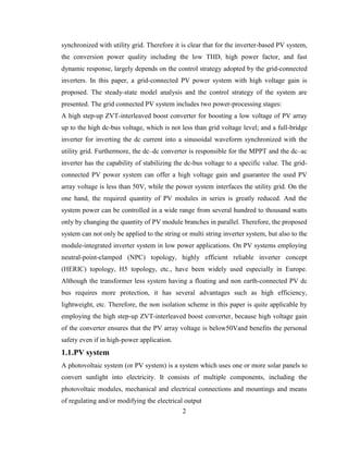 This document provides an overview of photovoltaic (PV) power systems and their components. It discusses the different types of PV system configurations, including grid-connected and standalone systems. Grid-connected systems can range in size from residential to utility-scale solar power plants. The document also covers factors that affect PV system performance such as temperature, shading, and dirt. Maintaining clean panels and allowing air flow can help increase output and panel lifespan.