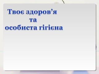 Особиста гігієна 1. 3. 4. 5. Загартовування – це вплив