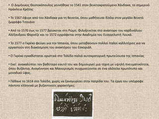• Ο ΔομινικοσΘεοτοκόπουλοσ γεννικθκε το 1541 ςτον βενετοκρατοφμενο Χάνδακα, το ςθμερινό