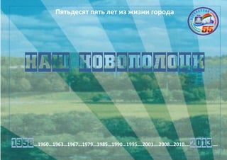 Документ представляет собой буклет, посвященный 55-летию города Новополоцк, включая его историю, промышленное развитие и культурные достижения. Освещаются важные события от основания города в 1958 году до современного состояния, акцентируя на значимости нефтехимической отрасли и спортивных успехах. Также упоминаются образовательные учреждения, культурные инициativerы и международные связи города.