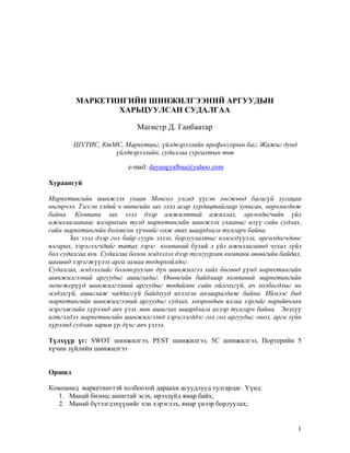 илтгэлдээ маркетингийн шинжилгээнд хэрэглэгддэг гол гол аргуудыг онол, арга зүйн