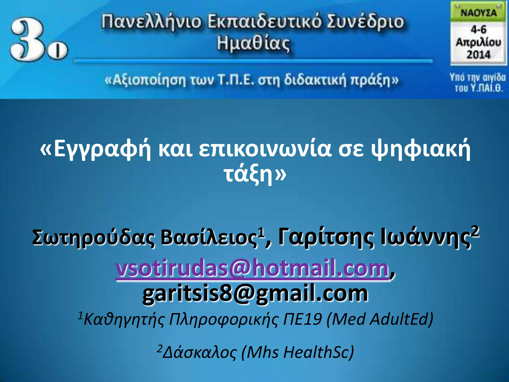 «Εγγραφι και Επικοινωνίαςε ψθφιακι τάξθ»