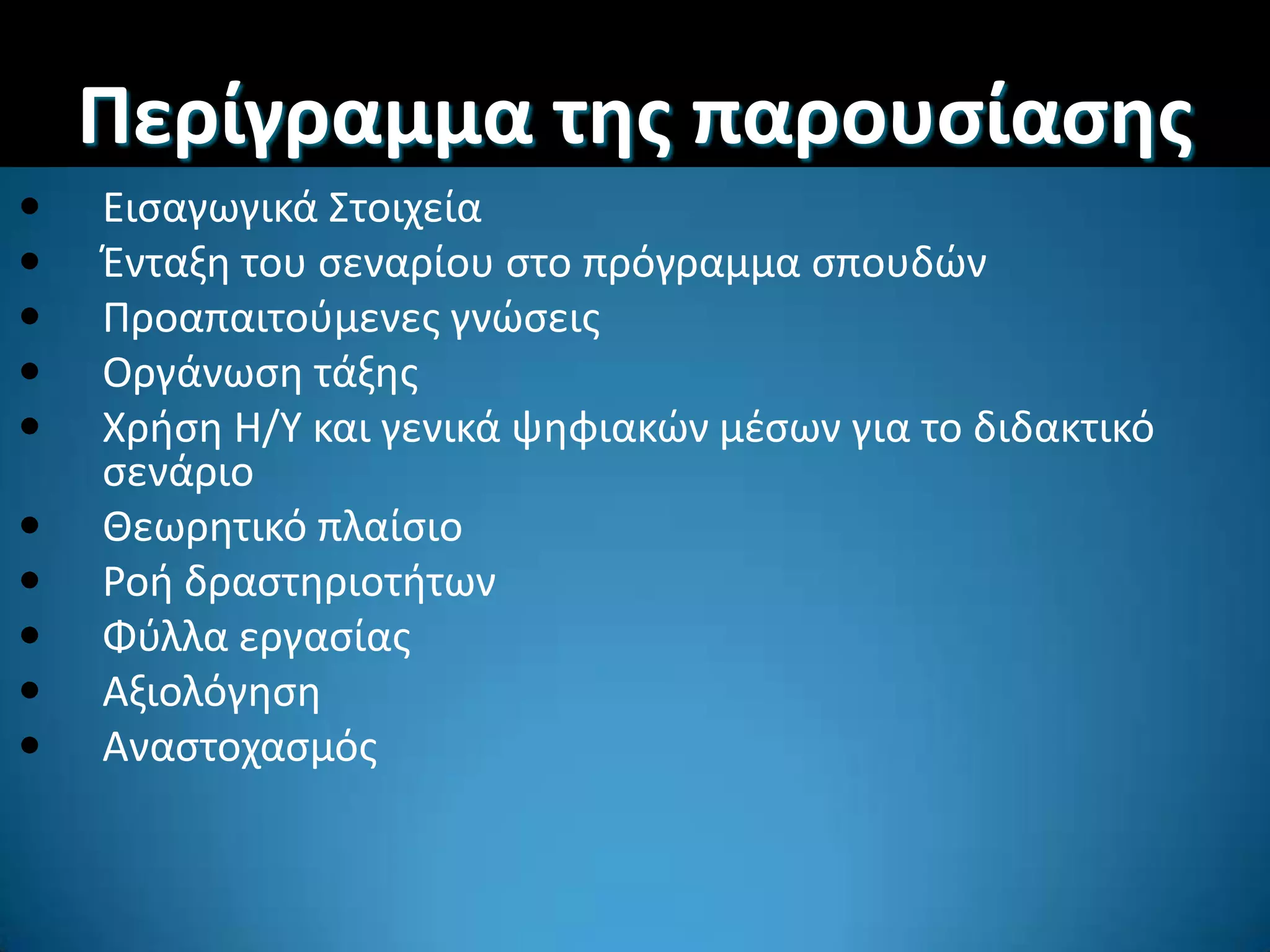 Για τθν ανάπτυξθ του ςυγκεκριμζνου διδακτικοφ ςεναρίου