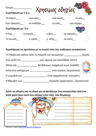 Μέσα στα ________________ θα βάλουμε πασχαλινά αυγά. (καλάθι)