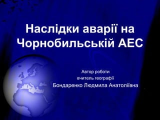 Аварію на ЧорнобильськійАЕС, що трапилася в 1986 р., вважають найбільшою