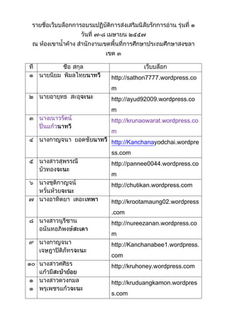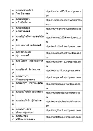 The document contains a list of over 30 URLs for WordPress blogs or websites. The URLs are not accompanied by any other context or information about the content or purpose of the sites.