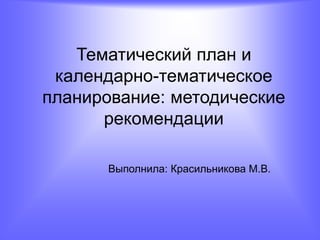 Документ содержит методические рекомендации по составлению рабочей программы и календарно-тематического планирования для образовательных учреждений. Рабочая программа является индивидуальным инструментом педагога, определяющим содержание, формы и методы образовательного процесса с учетом особенностей учащихся. Календарно-тематическое планирование служит для организации учебного процесса в соответствии с государственными стандартами и может варьироваться в зависимости от конкретных условий и требований.
