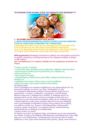 ΤΟ ΣΧΟΛΕΙΟ ΣΤΗΝΨΥΧΙΚΗ ΥΓΕΙΑ ΤΟΥ ΜΑΘΗΤΗ ΠΩΣ ΒΟΗΘΑΕΙ???