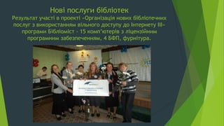 у 4 сільських бібліотеках: Кадиївка, Соколівка,
