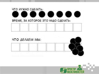 Документ посвящен тайм-менеджменту для руководителей и акцентирует внимание на важности эффективного управления временем, предлагая методы и стратегии для повышения продуктивности. Автор, Наталья Гуц, делится статистикой недостатка времени среди руководителей и призывает к аудиту затраченного времени для достижения целей. Подчеркивается необходимость освобождения времени для важных задач и осознания «похитителей времени», таких как прокрастинация и неэффективные коммуникации.
