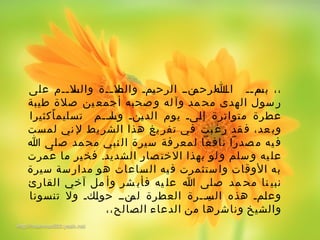 تناقش الوثيقة سيرة الرسول محمد صلى الله عليه وسلم منذ ولادته وحتى بعثته، حيث تتناول تفاصيل عن أسرته ونسبه وظروف نشأته. تبرز أهمية الدعوة التي جاء بها وكيف ساهمت في تحويل الناس من الظلمات إلى النور. تُعد الوثيقة مرجعًا هامًا لفهم حياة النبي الكريم ومكانته في التاريخ.