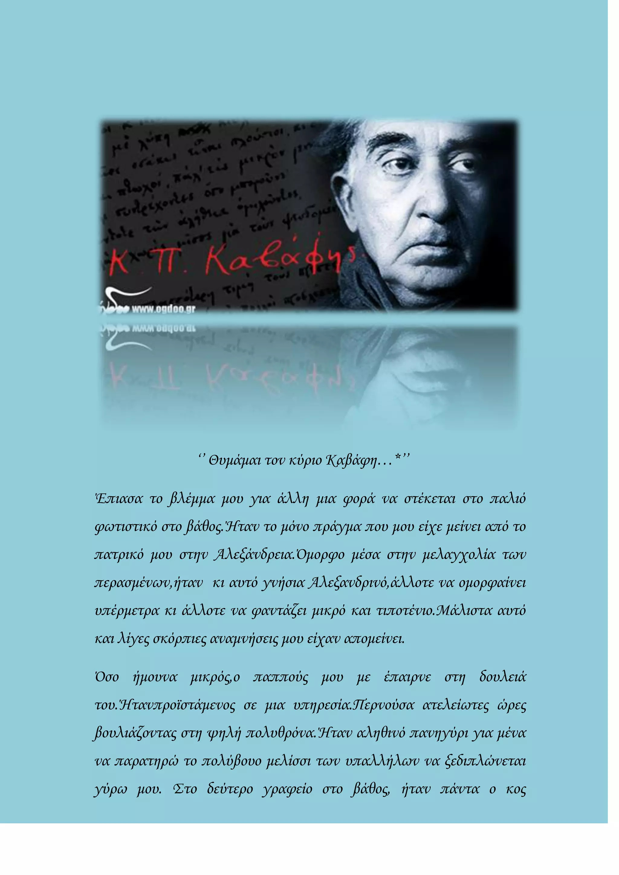 ‘’ Θυμάμαι τονκύριο Καβάφη…*’’