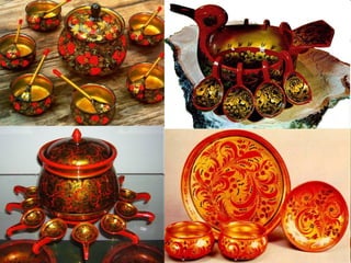 Урок изобразительного искусства для 2 класса, проведенный Ольгой Владимировной Гурьяновой, посвящен основным цветам хохломской росписи и элементам растительного узора. В документе упоминаются цвета, такие как красный, желтый и золотистый, а также элементы узоров, такие как «осочки», «завиток» и «капельки». Также обсуждаются элементы гжельской росписи.